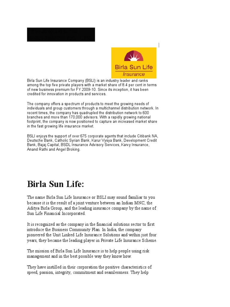 Birla Sun Life Insurance Company 1 Life Insurance Financial Risk
