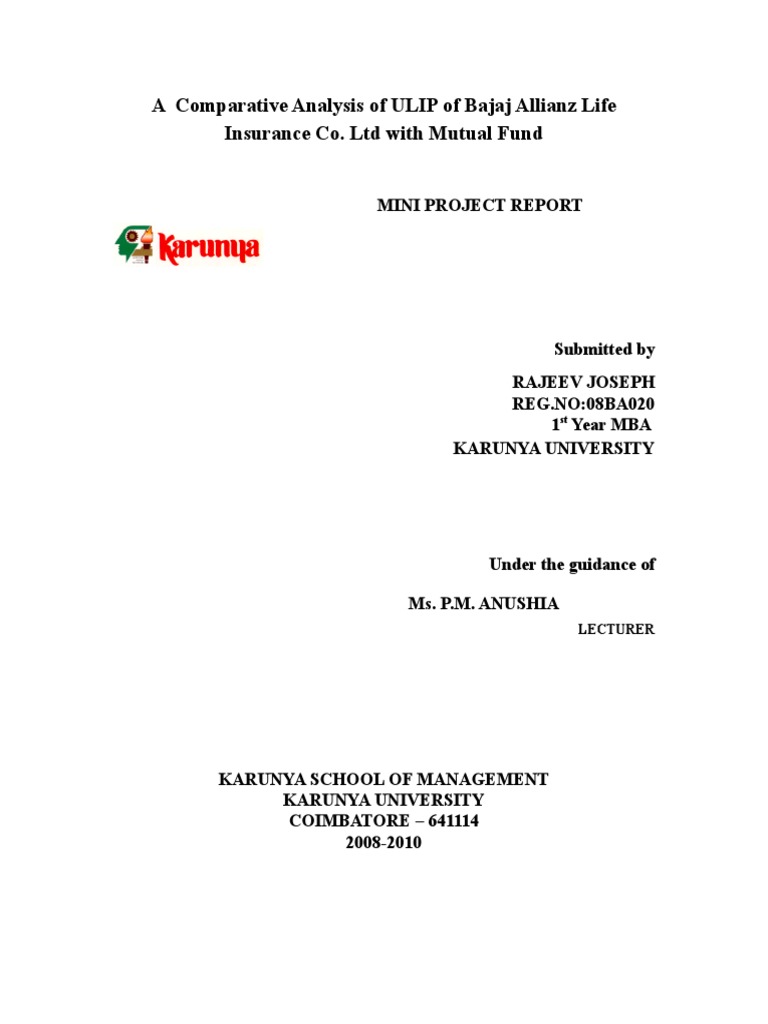 A Comparative Analysis Of Ulip Of Bajaj Allianz Life Insurance Co