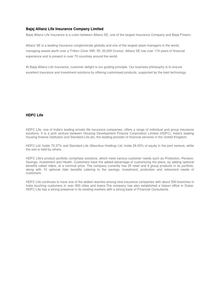 Life Insurance Company Bajaj Allianz Life Insurance Company Limited