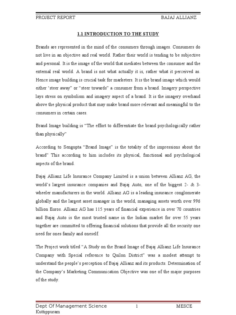 A Study On The Brand Image Of Bajaj Allianz Life Insurance C