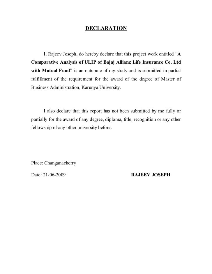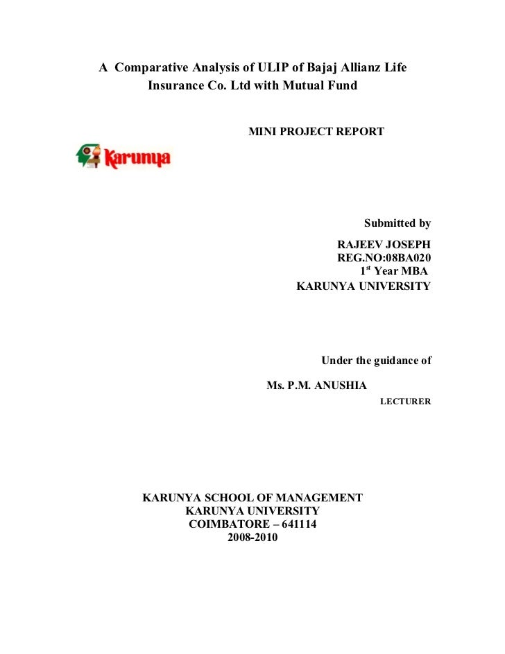 A Comparative Analysis Of Ulip Of Bajaj Allianz Life Insurance Co