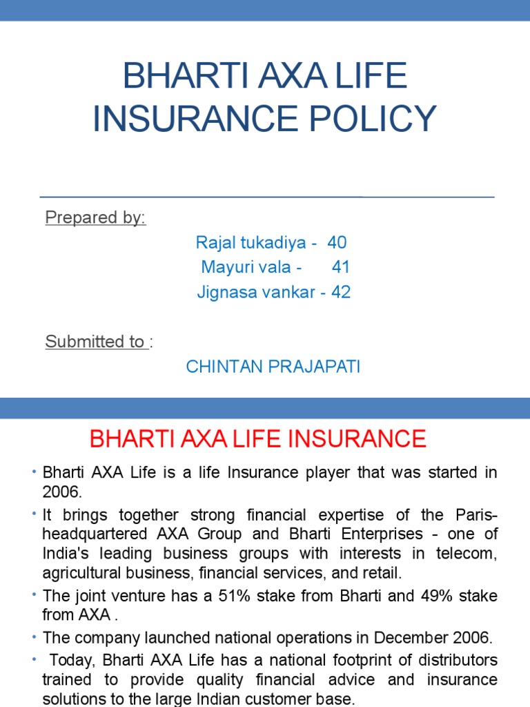 Ppt On Bharti Axa Life Insurance Insurance