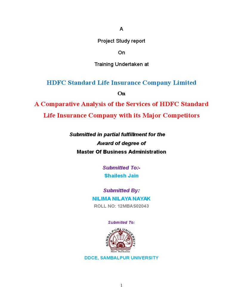 Project On Hdfc Life Insurance Professional Liability Insurance