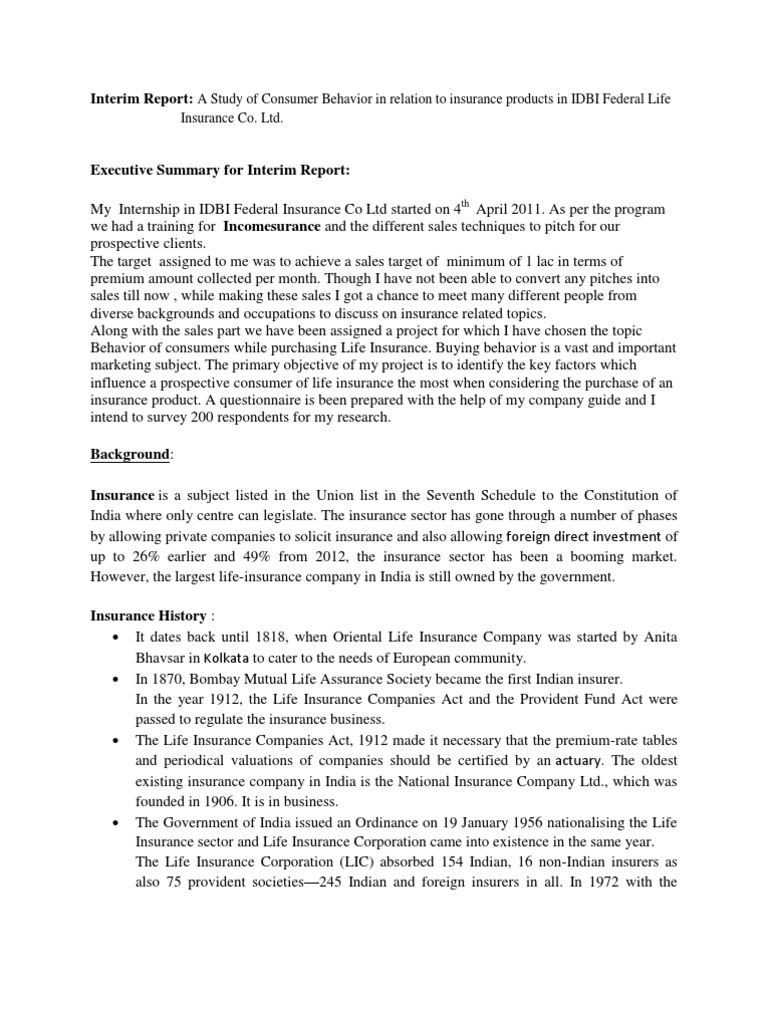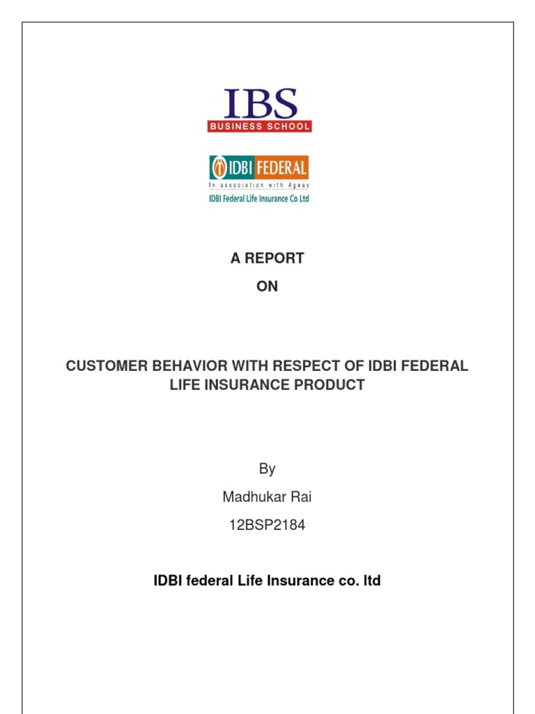 Summer Internship Project In Idbi Fedral Life Insurance Insurance