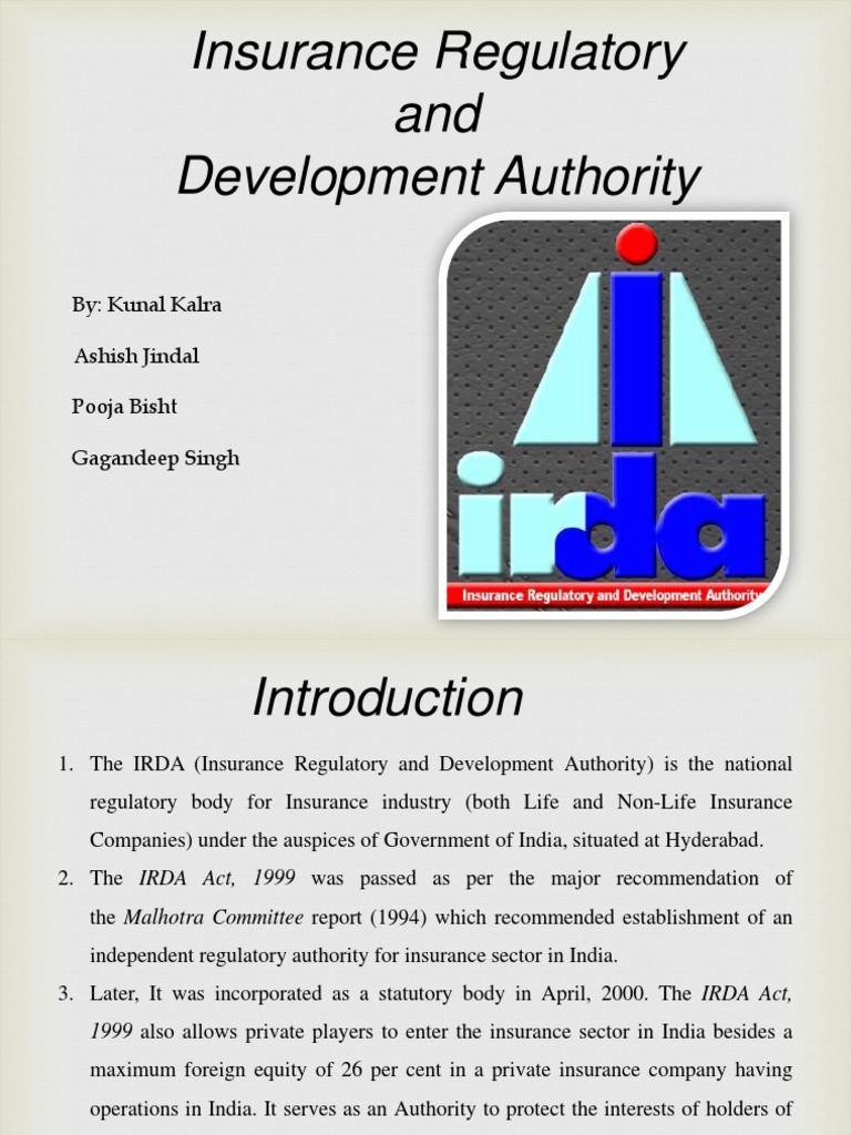 Insurance Concepts And Irda Insurance Regulatory And Development