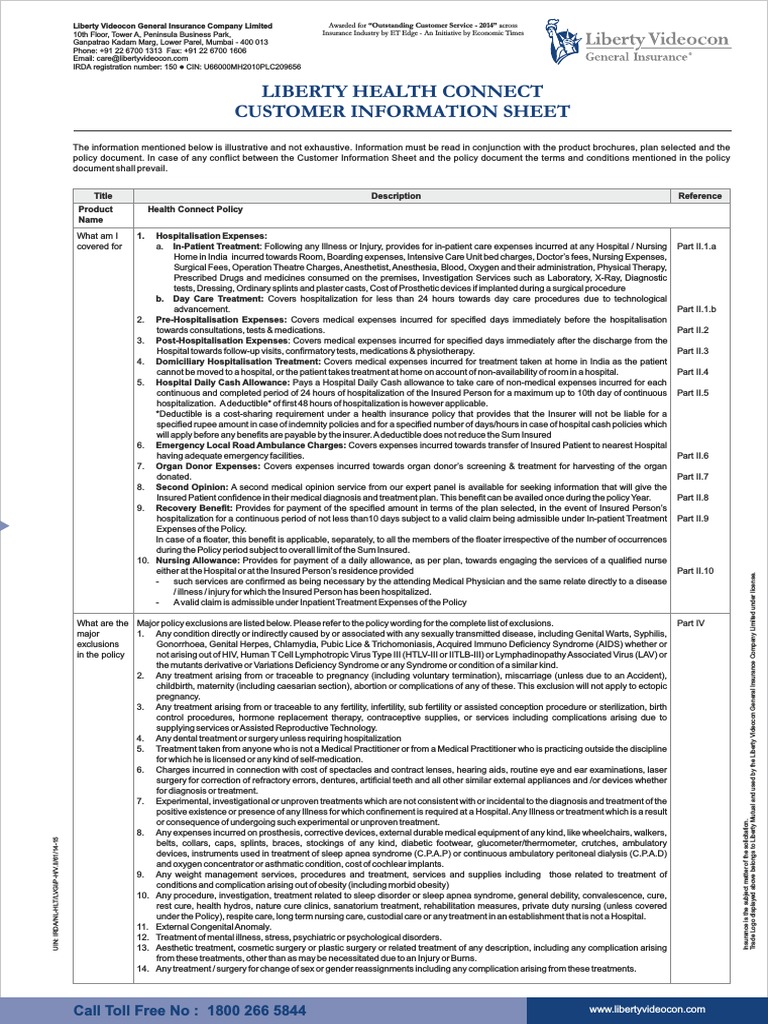 Liberty Health Connect Policy Wording By Liberty General Insurance