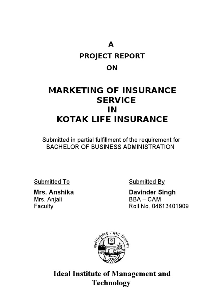 Marketing Of Insurance Service In Kotak Life Insurance Insurance