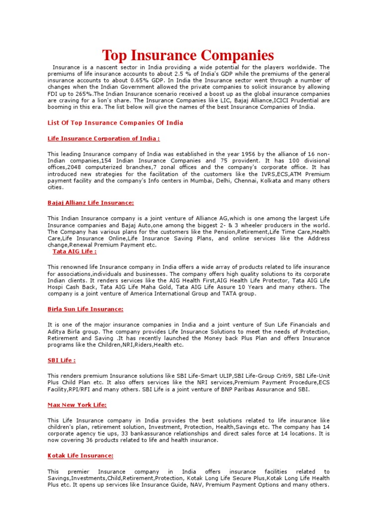 Top 10 Best Life Insurance Companies In India 2018 Web Visible