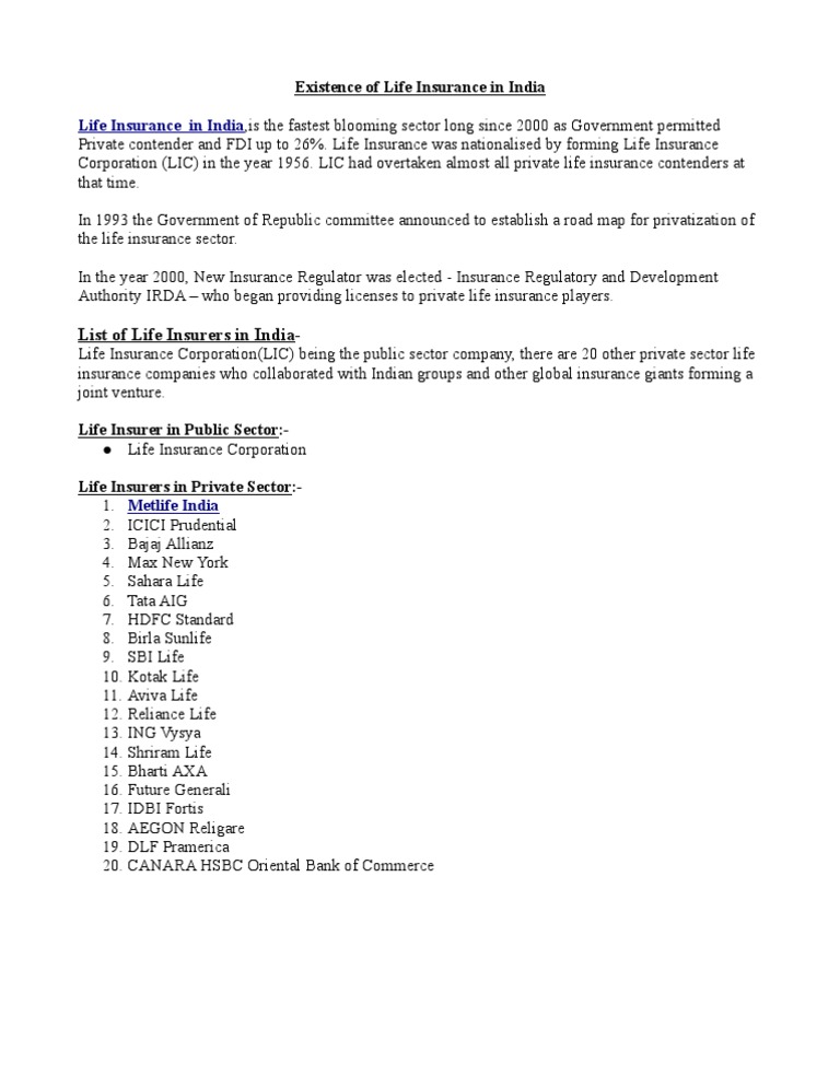 Existence Of Life Insurance In India