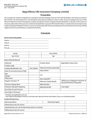 Fillable Online Schedule Bajaj Allianz Life Insurance Company