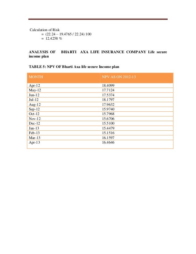A Project Report On Risk And Return Analysis Of Bharti Axa Products