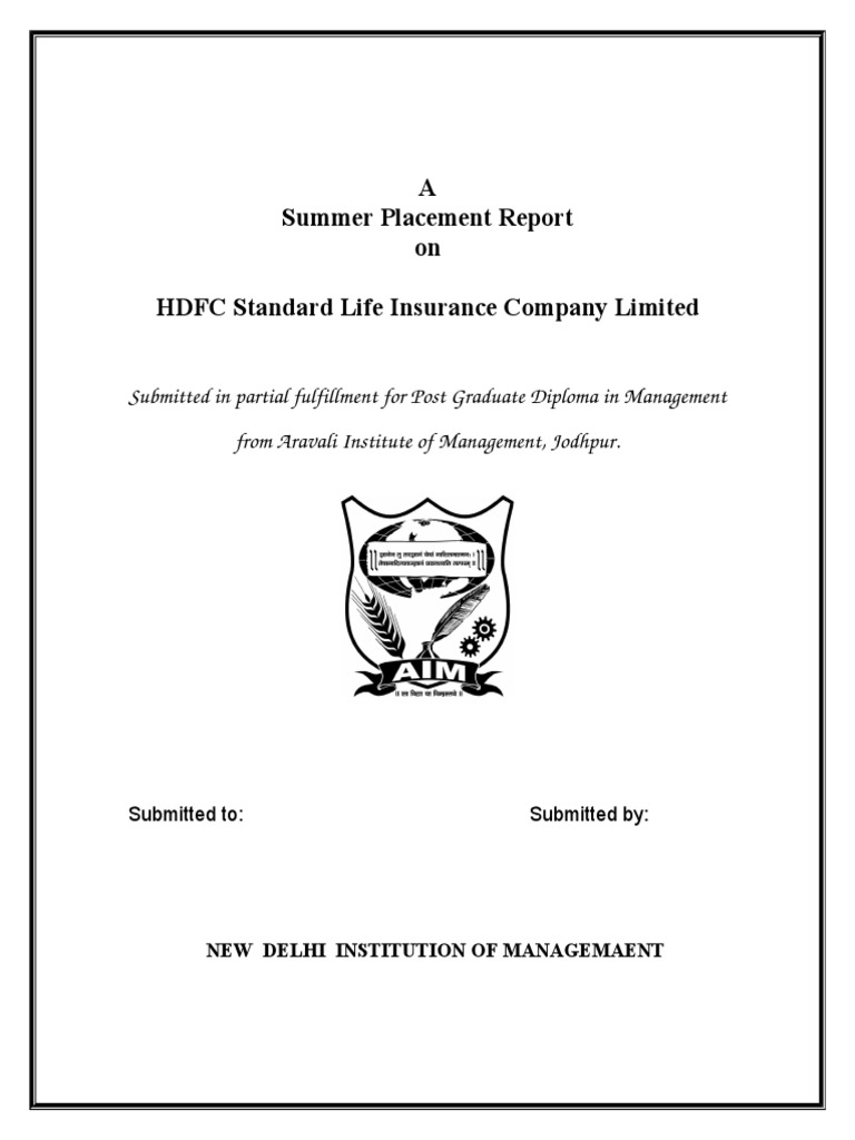 Mba Summer Project On Hdfc Standerd Life Insurance Doc Document