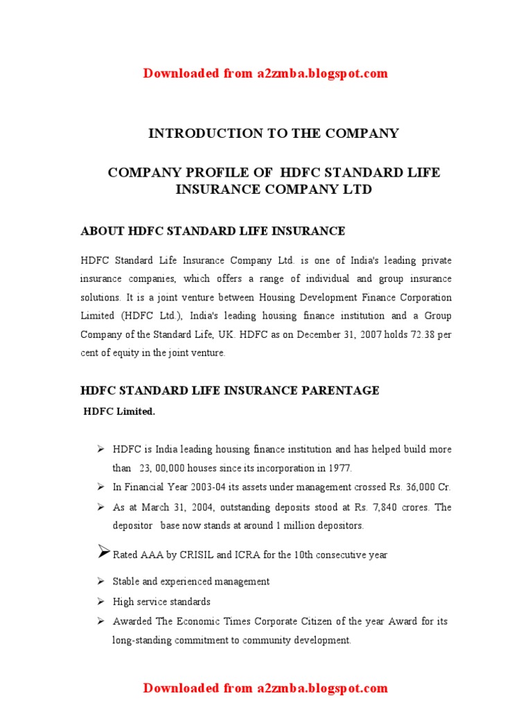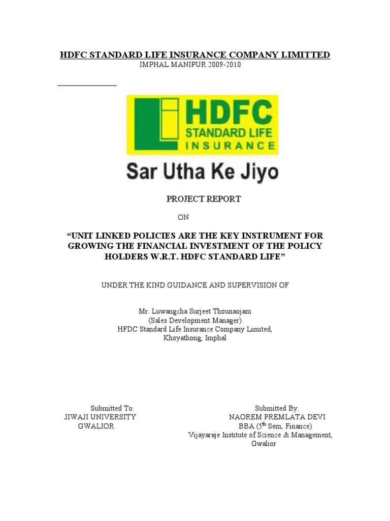 Download Project On Hdfc Standard Life Insurance Company Ltd