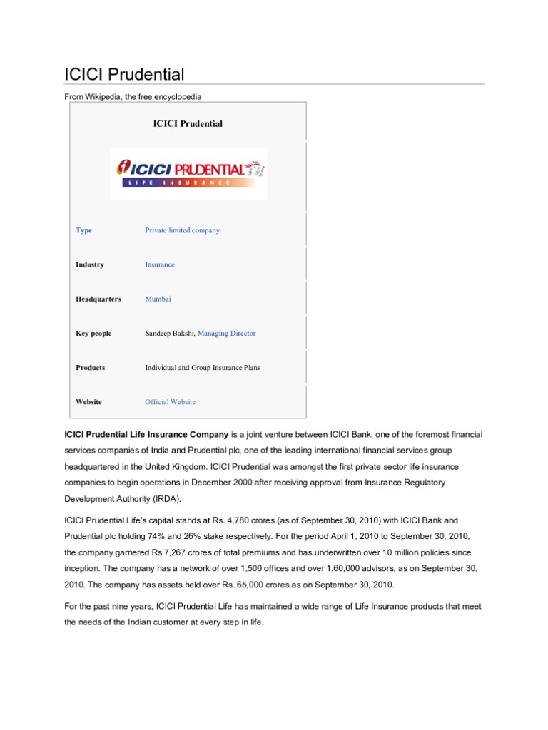 Icici prudential life insurance company. Like sale of any kind of insurance or financial products nor. They are known to offer products such as term insurance plans.