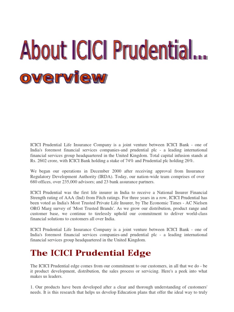 A Study On Brand Image Of Icici Prudential Life Insurance Ltd Mba