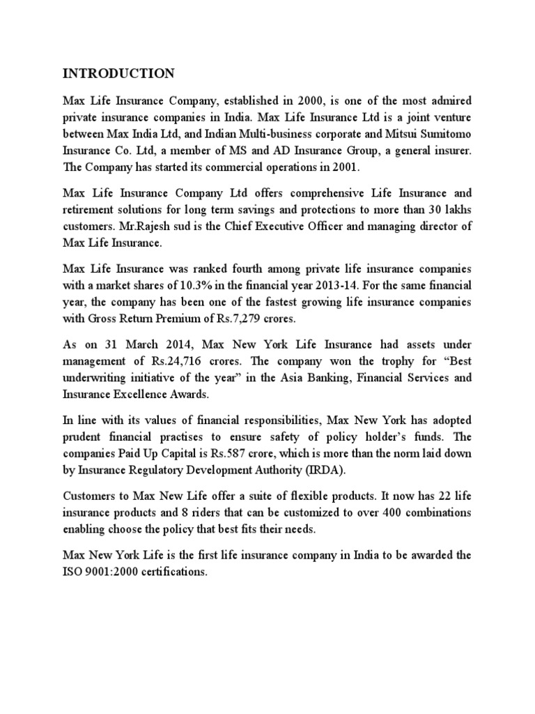 Literature Review Of Max Newyork Life Insurance The Best Essay