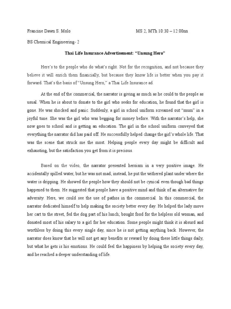 Analysis On The Technicalities Of Thai Life Insurance S Ad Unsung